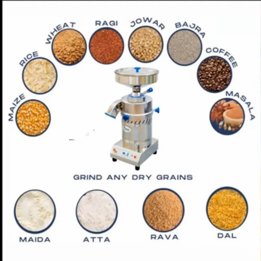 Domestic 1 HP mini dal mill with 6-inch stone and stainless steel contact parts. Single-phase operation, semi-automatic, 0.75 KWH consumption.