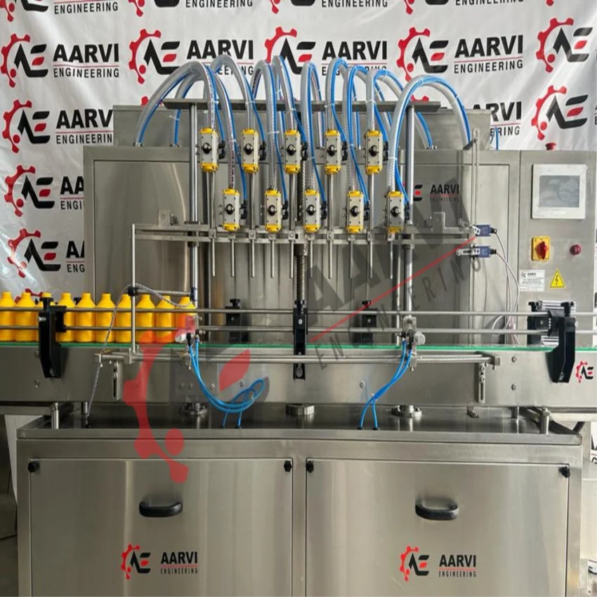Mechanical driven, 3 Phase, 440V servo liquid filling machine. Offers 150 BPM capacity with driven nozzles. Ready for dispatch with 1-year warranty. Weighs 350 Kg.