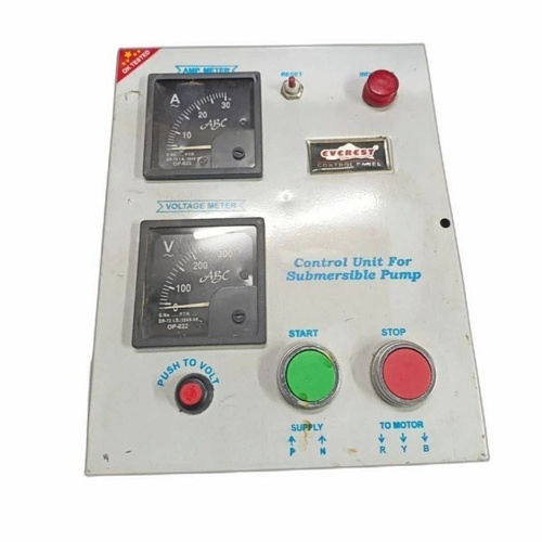 Industrial grade, semi-automatic submersible pump control machine. Three phase, 440V, 10 HP motor power. IP44 rated with mild steel construction for durability. Made in India.