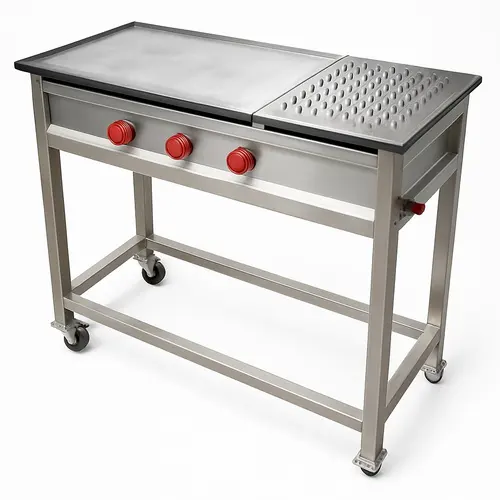 10-inch stainless steel chapati tawa, grade 304, with a flat surface. Features 3 knobs for chapati making. Minimum order quantity: 2 pieces.
