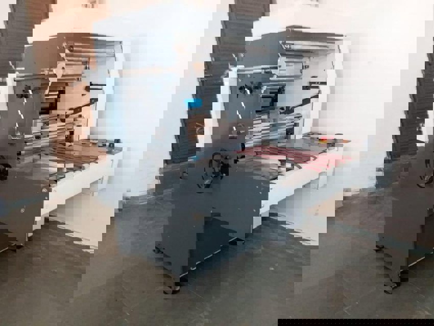 Semi-automatic, 10-roller thermal and cold film lamination machine for 24" paper. Features hydraulic pressure for hot and cold film lamination applications.