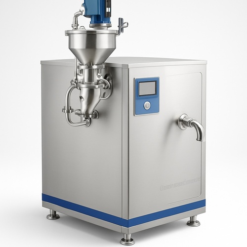 Stainless steel continuous freezer with 100-500 LPH capacity. This single-temperature machine operates on 3-phase, 440V power.