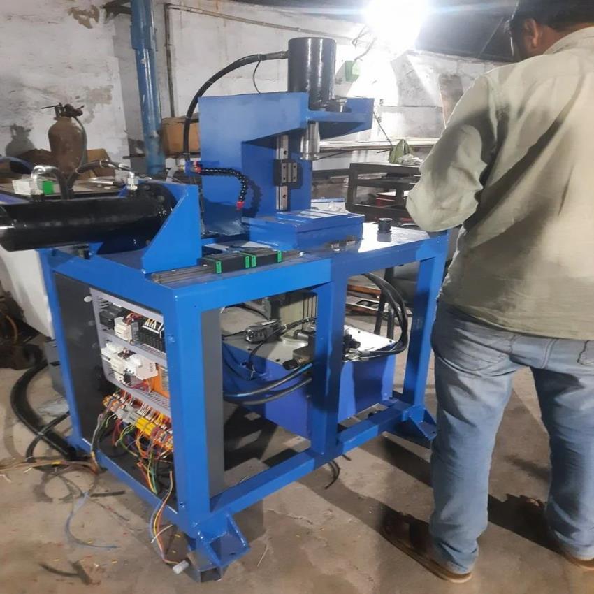 Fully automatic CNC controlled C type hydraulic power press. Industrial mild steel equipment with 100-ton capacity and 440V voltage.
