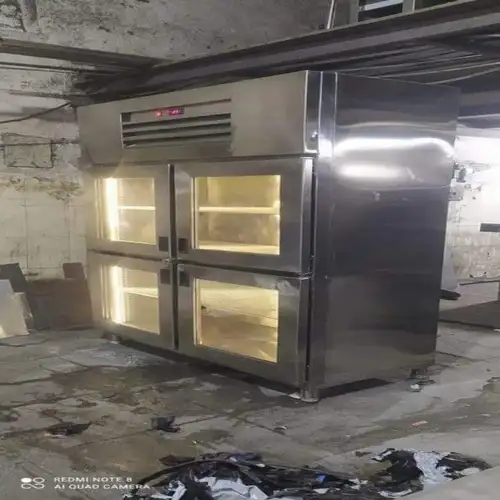Four-door chiller machine with a 1000L capacity. External dimensions of 48x24x84 mm. Minimum order quantity is one piece. Designed for efficient cooling.