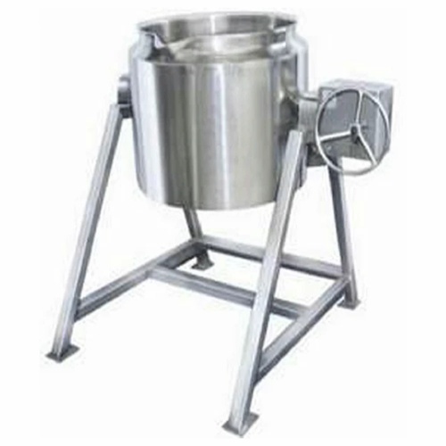 1000L semi-automatic stainless steel pressure machine with hydraulic tilting. Features include single-phase operation, aluminum handles, and ISI certification for caterers and canteens.