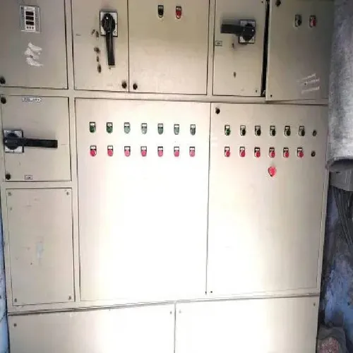 Industrial 415V, three-phase starter panel with 400A current rating. Constructed from sheet metal, featuring IP52/54 protection for 100 HP motors. Suitable for heavy-duty industrial applications.