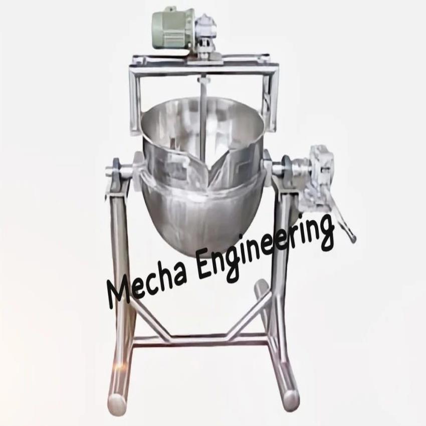 Three-phase, 100L stainless steel tilting kettle for ointment, cream, and paste preparation. Operates at 50 Hz and 280V with manual tilting.