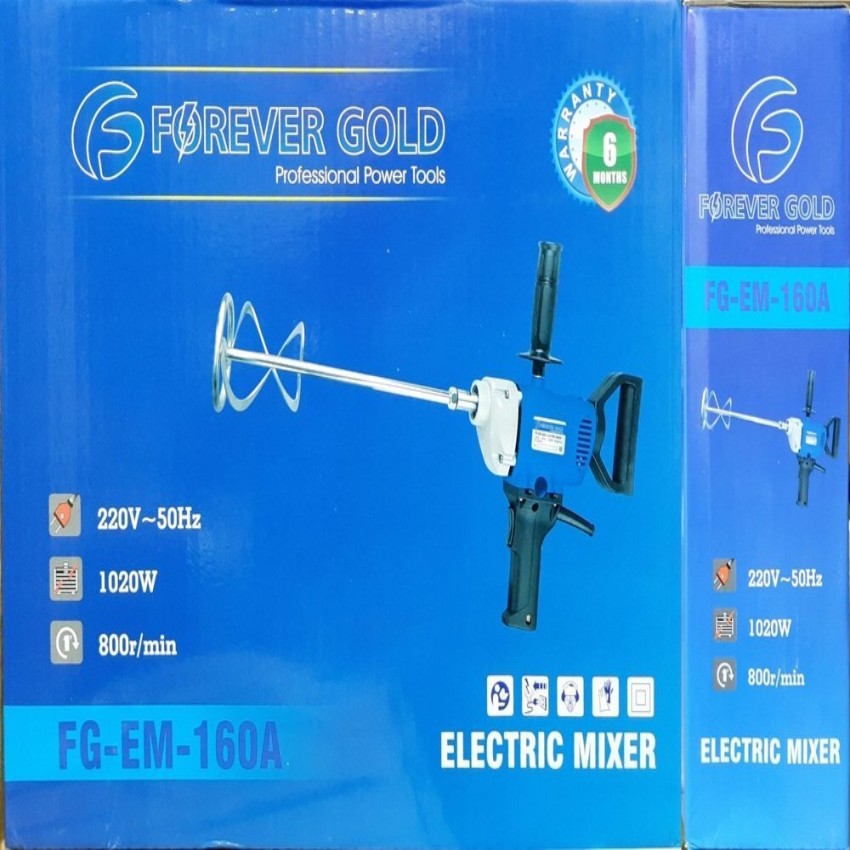 Portable electric paint/putty mixer, 1020W, semi-automatic. Features variable speed up to 800r/min. Includes 6-month warranty on armature. Packaged in a box.