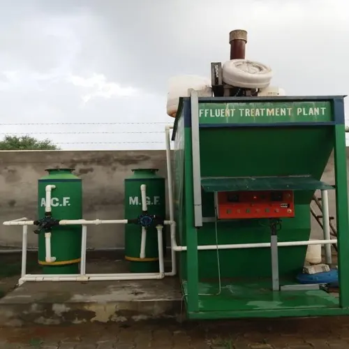 Automatic 10m3/hour chemical effluent treatment machine for industrial wastewater. Handles all water quality types with adjustable capacity from 2 KL to 500 KL. Power and tank dimensions according to plant.