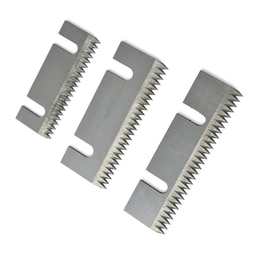 Rectangular packaging machine blade with 0.2-0.5 mm thickness, operating from 12 to 460 V at 50 Hz for industrial use.