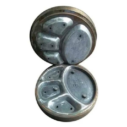 Mild steel 12-inch round plain paper plate die. Semi-automatic operation, produces 5-6 plates per cycle. Silver color, for making paper plates.