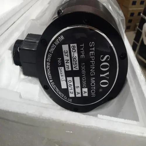 Bipolar stepper motor with 1.8-degree step angle and 1200 RPM speed. Operates at 36V with 101-400 mA current. Three-phase design for efficient operation. Model 130BYG350A.