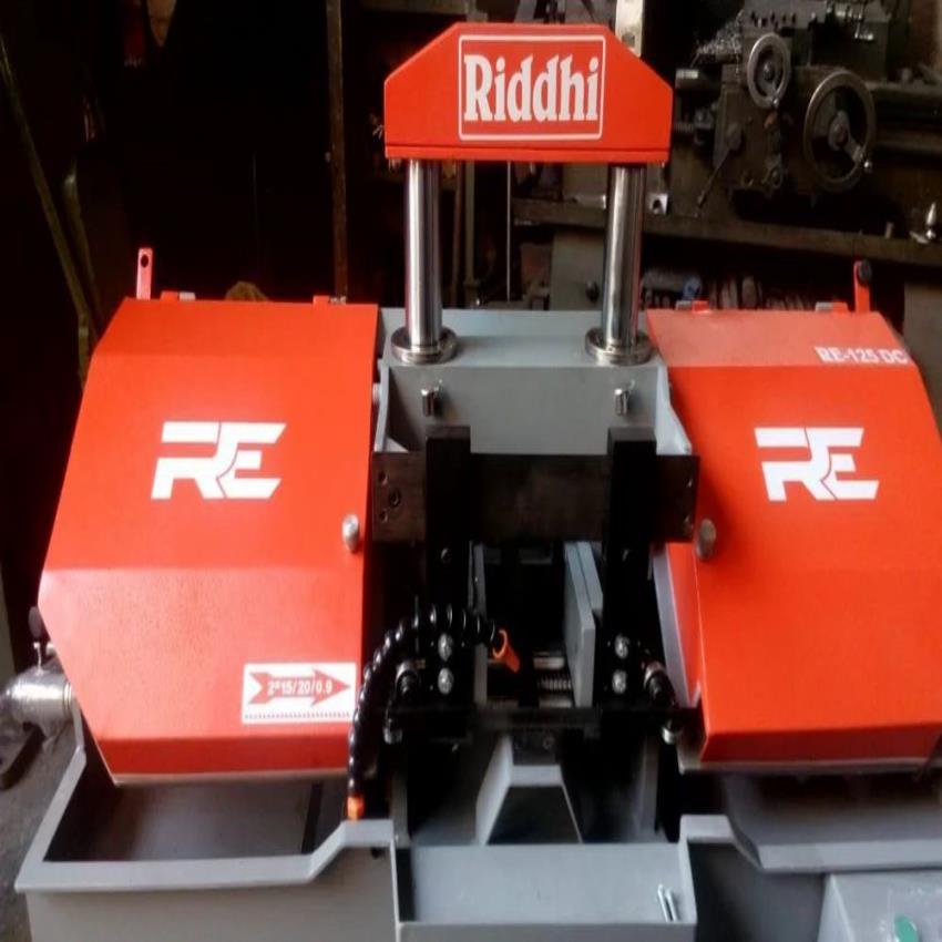 Automatic double column band saw machine with 125mm product cutting capacity. Utilizes a 20mm blade size for mild steel cutting. Model RE125DC.