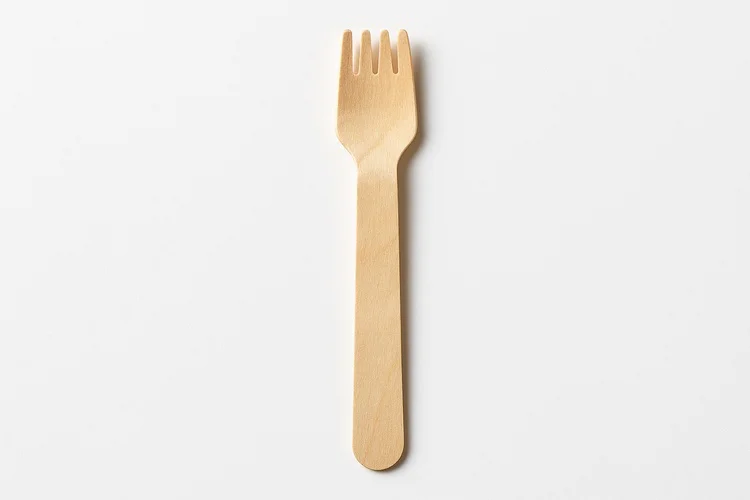 Brown wooden disposable cutlery forks, 14cm in length. Made from natural wood material for eco-friendly use.