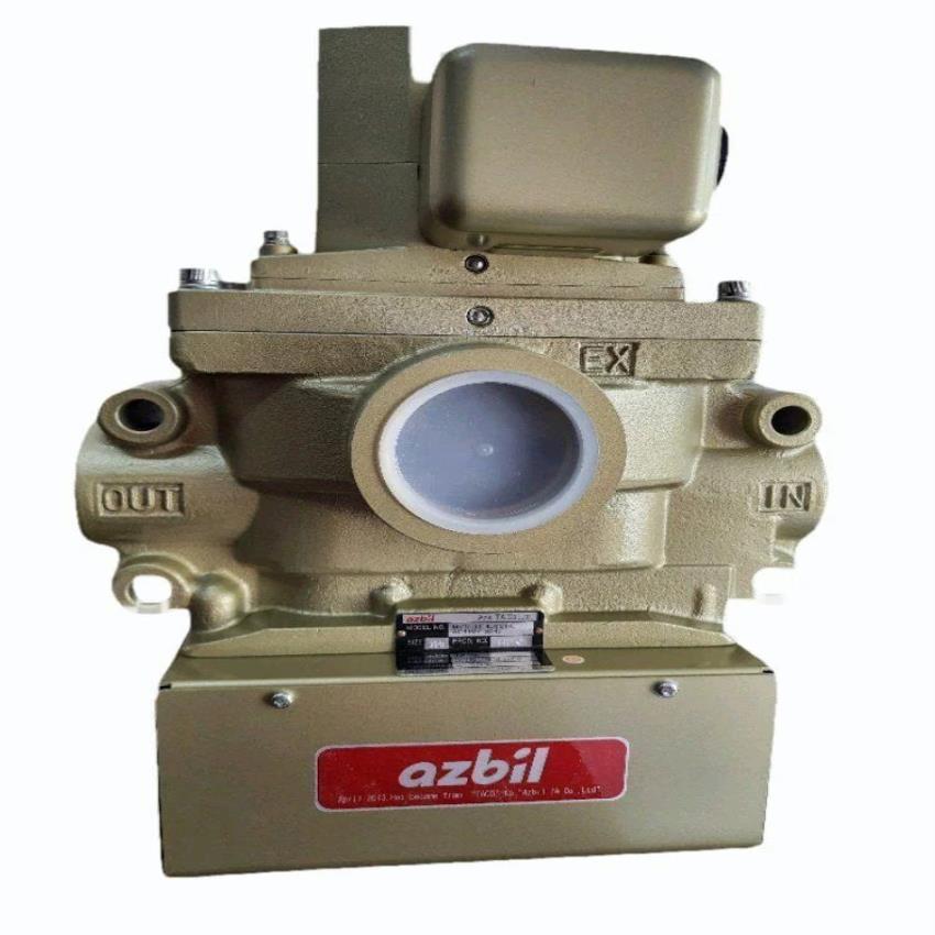 Cast iron solenoid valve with 1.5 inch size, rated for 0-50 KG pressure. Features a golden color, threaded end connection, and 3 ports for air media.