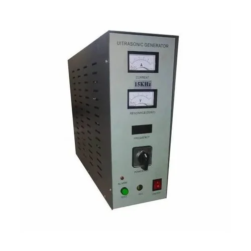 Automatic steel ultrasonic generator operating at 15kHz. Features 220V, 3200/4100W power, and electric display. Dimensions: 390x500x150mm.