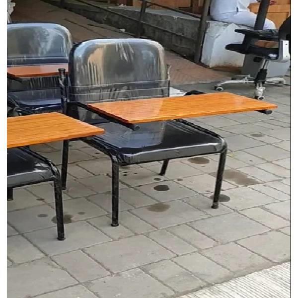 Student chair with 16-inch seating height, leather seat, medium back, and half pad arm style. Available in black and brown. Not height adjustable.