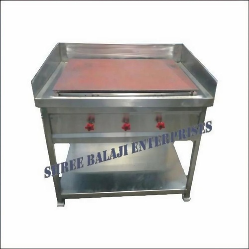 Two-burner LPG dosa hot plate for hotel, restaurant, and snack centers. Constructed from stainless steel with a length of 2.5-3 feet.