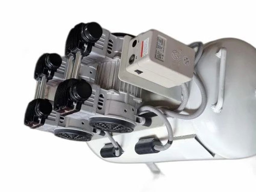 This 2 HP oil-free reciprocating compressor delivers 8 Bar pressure with a maximum flow rate of 25 CFM. It includes an air tank capacity of up to 50 L and operates on AC single phase.