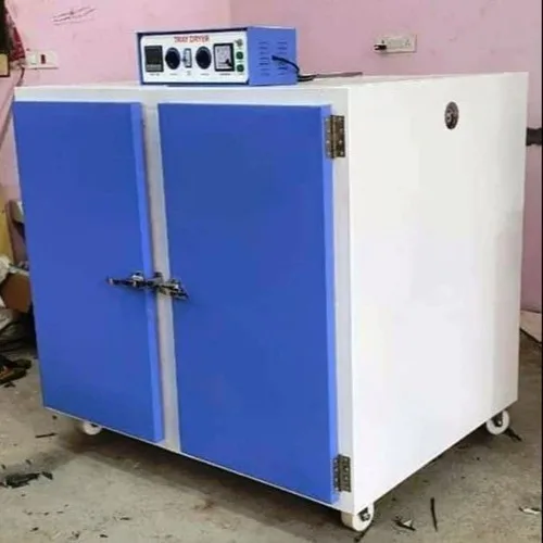 Semi-automatic laboratory drying oven with 200 kg capacity. Stainless steel construction, digital display, 250°C max temperature. 48 trays included.
