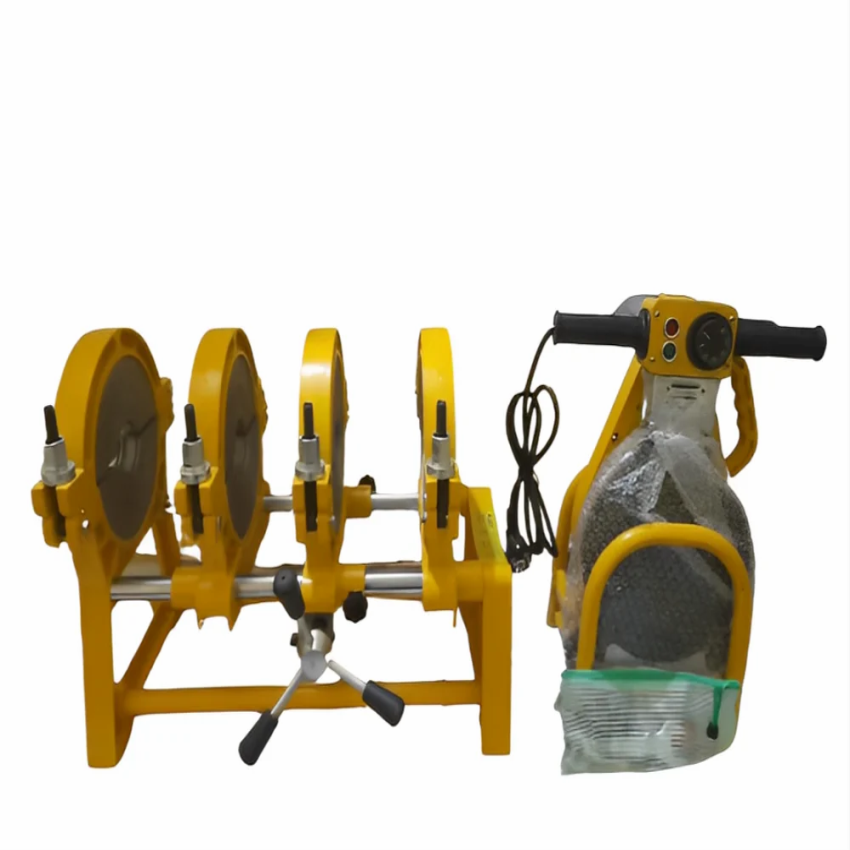 Manual HDPE butt fusion pipe jointing machine with 200mm capacity. Features a 220V single-phase induction motor, 2000W power consumption, and electric power source.