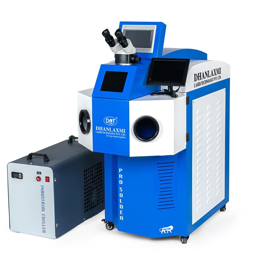 200W jewelry soldering machine with external chiller. Operates at 50Hz and 220V. Ideal for chain soldering, ring joints, earring components, and precision jewelry work.