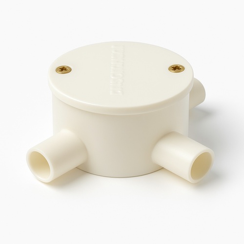 Circular electrical box with 4 ways and 20mm depth. Made from white PVC material. Manufactured in India.