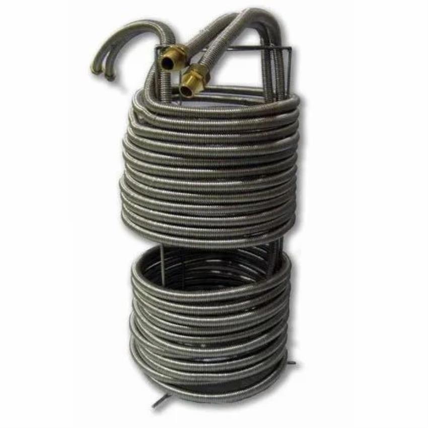 Aluminium and brass coil heat exchanger, 220V, 1.718 L/min flow rate. Handles oil medium up to 4.5Mpa working pressure and 120°C.