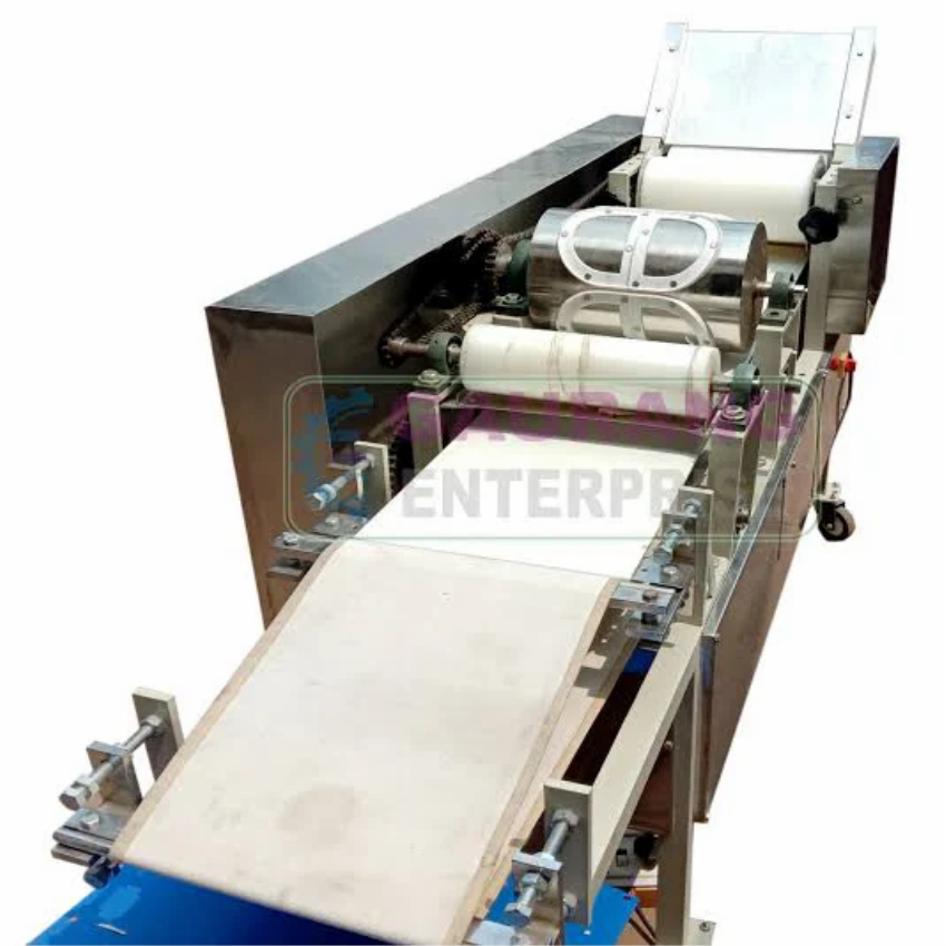 Semi automatic samosa patti machine, 220 Volt, 80 Kg weight, made from flour maida. New condition, 6-month warranty.