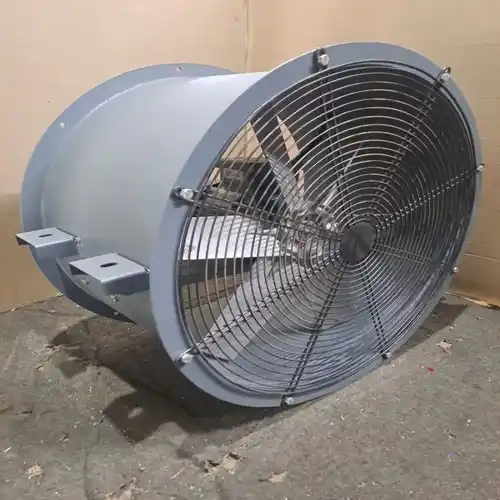 24-inch industrial tube axial fan, suitable for duct and wall mounting. 220V operation with aluminium casting blades. Airflow capacity of 1000 m3/h.