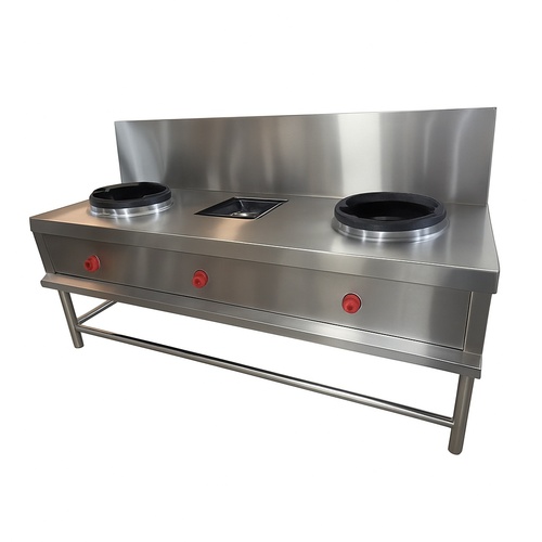 This 3-burner LPG gas range, made of SS304 stainless steel, is suitable for restaurants and hotels. Features 4 knobs, child lock, kitchen timer, and customization options.