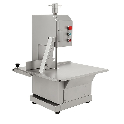 Semi-automatic, 3 hp bone saw machine crafted from stainless steel. Features 50 Hz frequency, 230 V, single phase. Cuts mutton at 500 kg/hr, ideal for commercial use.
