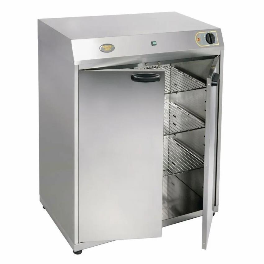 High-capacity stainless steel plate warmer, 3KW power, 120 plates capacity. Measures 800x460x925mm, 45Kg weight, connects via 13 amp plug.