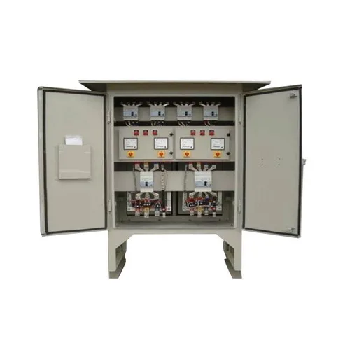Automatic 3-phase electrical control panel for fountains. 440V operating voltage, 60 Hz frequency, IP55 rated, mild steel body. High strength and durability.