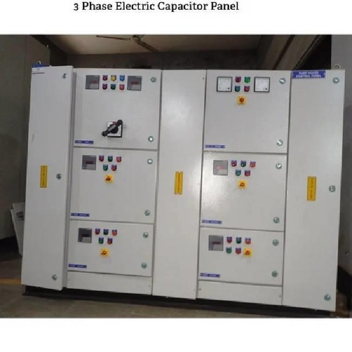 Rectangular, mild steel 3-phase electric capacitor panel. IP40 rated, 50 Hz, 250kg. Increases power factor correction significantly for industrial use. 1-year warranty.