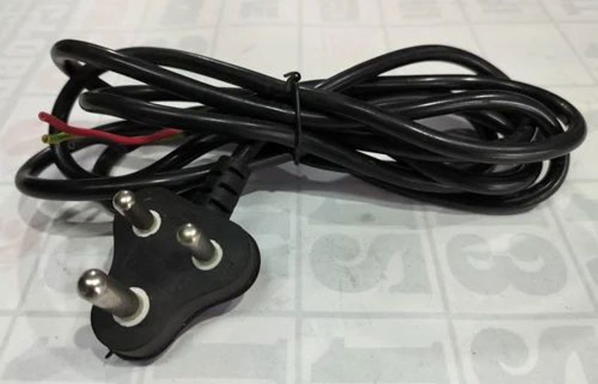 Black 3-pin power supply cord, 6A, 250V, 50Hz, two-phase. Suitable for connecting appliances to power supply. Operates at 25°C. Minimum order quantity of 50 pieces.
