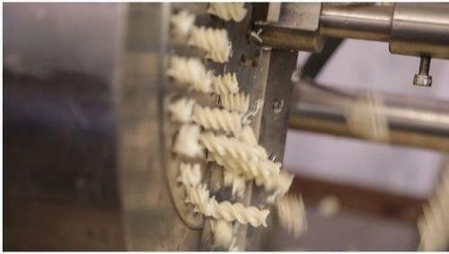 Color coated, 3-stage automatic pasta making machine for new applications. Features 0-50 kg/hr output.