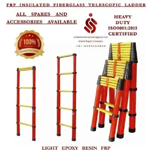 3.2 M FRP Insulated Fiberglass Telescopic Ladder with 150 kg capacity. Suitable for indoor/outdoor use. Features an insulated folding telescopic structure for versatile applications.