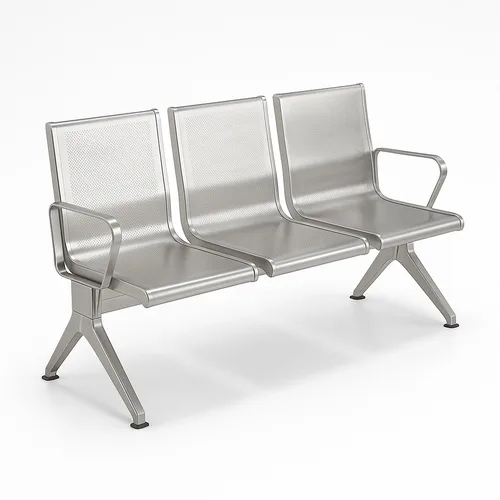 Silver stainless steel waiting chairs available in 3, 2, and 1-seater configurations for office use. Durable steel seat material, in stock.