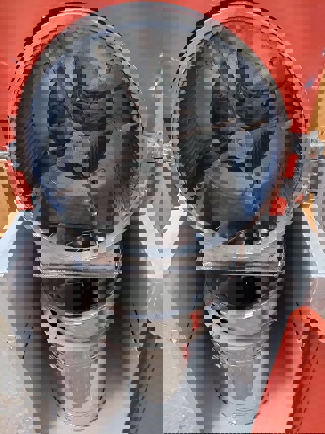 Commercial double chamber pulverizer machine with 30-50 Kg/hr capacity. Powered by 5 HP motor, semi-automatic operation, single phase electricity. Mild steel construction.