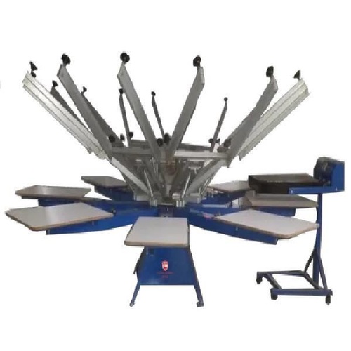 CE Certified manual screen printing equipment for t-shirts. Available in 12x12x6, 11x11x6, and 10x10x6 feet sizes. Color coated finish, 200 kg weight. New condition only.
