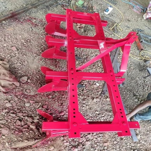 Mild steel tractor cultivator with 4 tines and a 6-inch tine depth. 5-foot length, polished surface finish, designed for agricultural soil preparation. Efficient for farming operations.