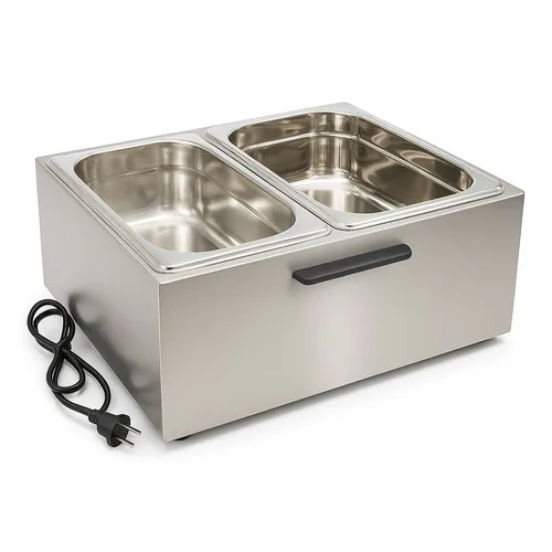 Food grade stainless steel chocolate melting machine with 4 KG capacity. Operates on electric power (220V, 50Hz, 500W) for commercial applications.