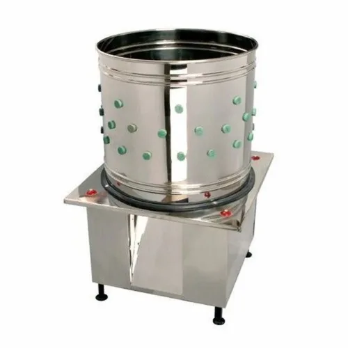 Industrial grade stainless steel feather cleaning machine. Belt drive, 1 hp motor. Processes 5 birds at a time, with a capacity of 500 birds/day.