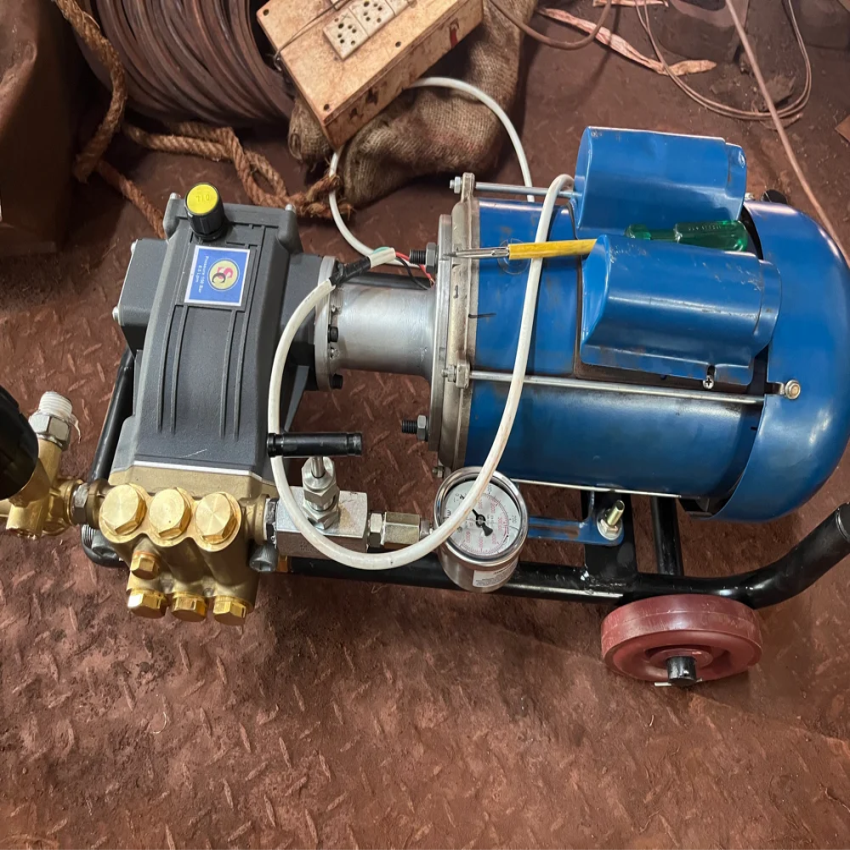 Portable 5 HP electric water jet cleaning pump with 200 Bar pressure. Delivers a max flow rate of 10.5, ideal for car washing applications. Two-phase motor.