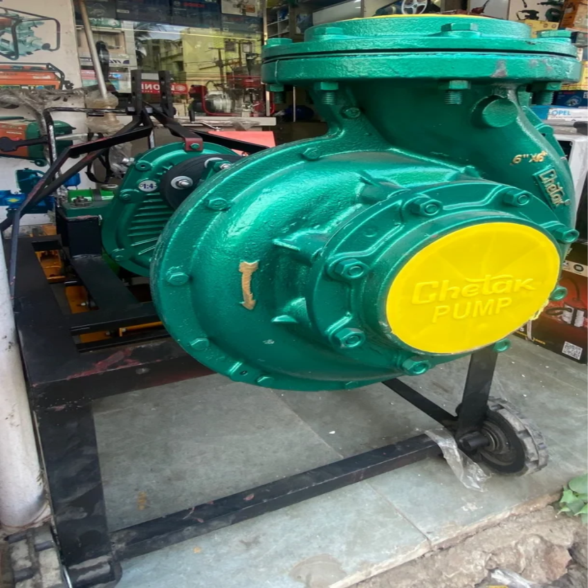 Cast iron tractor pump set with 10 HP motor, 5m head, and 20 LPM flow rate. Floor mounted for efficient operation. Ideal for agricultural applications.