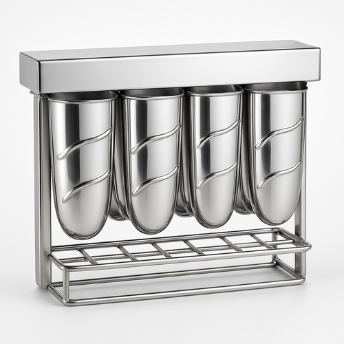 Stainless steel ice candy mould with 50 cavities, each 60ml capacity. Features a mirror finish and SS 202 grade for durability. Ideal for candy moulding.