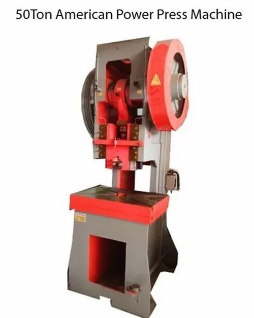 Semi-automatic C-Frame Power Press for industrial use. Features mechanical power source, 50-ton load capacity, and is constructed from durable mild steel. Designed for new applications in India.