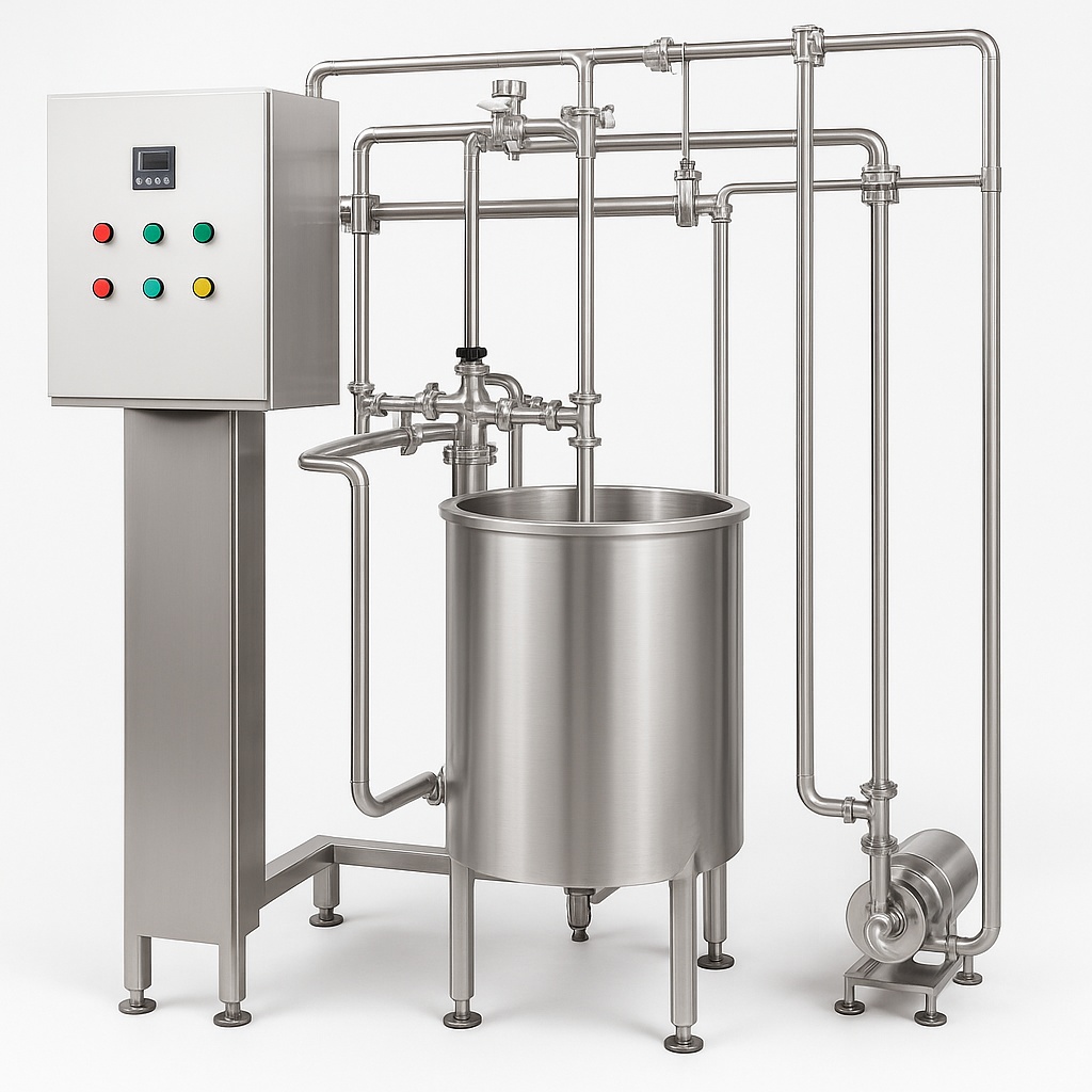 Automatic SS 304 milk pasteurization plant with 500 litres/hr capacity. Designed for efficient, energy-saving milk pasteurization to required temperatures. Made in India.