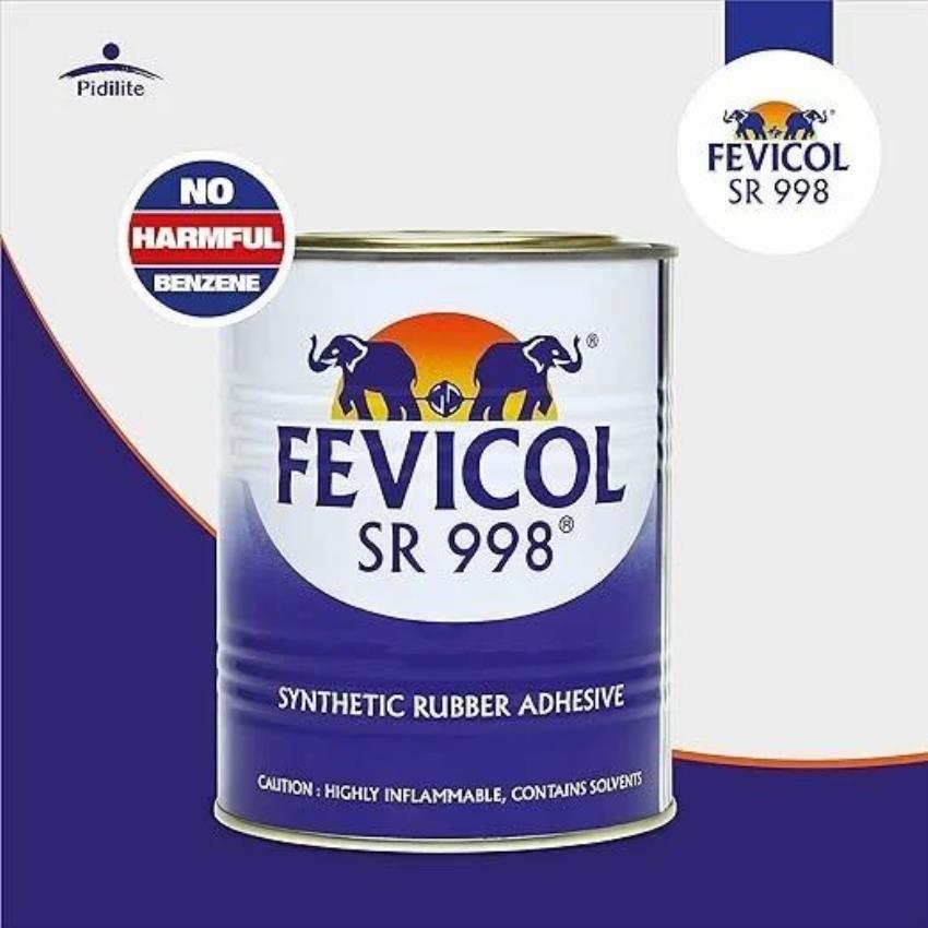 Industrial grade Fevicol SR 998 adhesive, 500 ml tin can. High strength for construction applications on wood, plastic, fabrics, and metal.